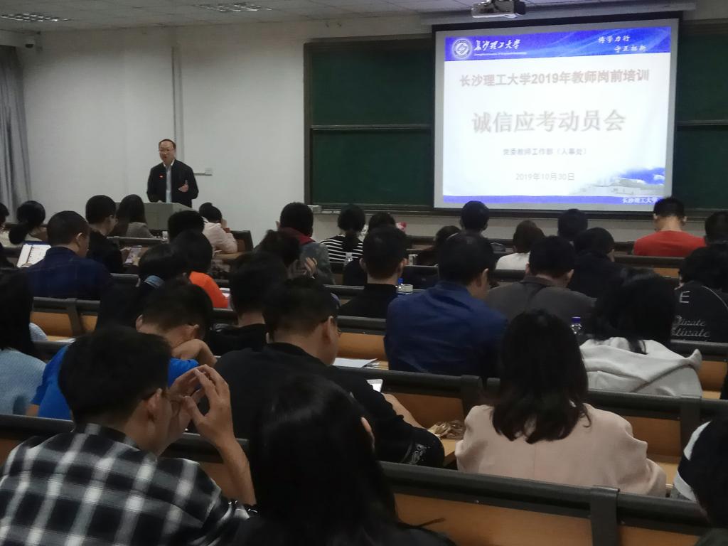 2019年10月30日晚,MG冰球官网在金盆岭校区4教507召开了2019年岗前培训考试诚信应考动员会,培训班全体学员和人事处有关工作人员参加。动员会由人事处副处长徐欣国主持。