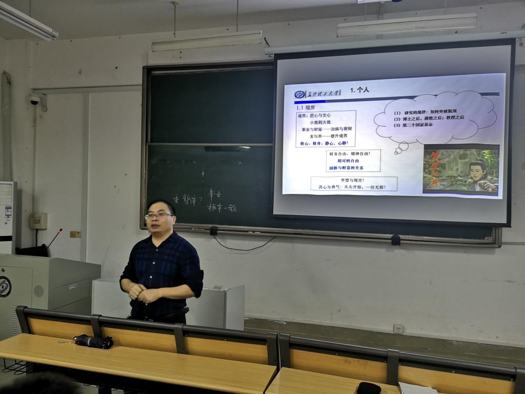 9月27日晚,校人文与社会科学研究处处长刘建江教授应邀在金盆岭校区7教 314室为新入职教师岗前培训班做了题为《个人成长、集体发展与项目申报——从小我到大我》的科研专题讲座,校党委教师工作部(人事处)徐欣国副处长、相关工作人员和2020年新入职教师岗前培训班学员共70余人参加了讲座。