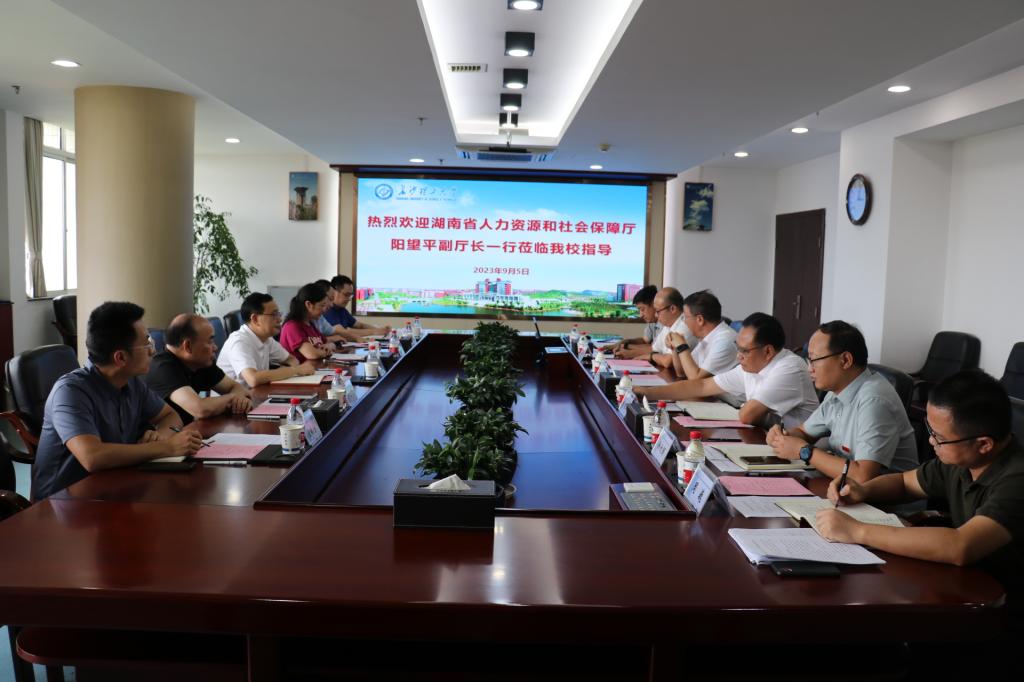 9月5日下午,湖南省人力资源和社会保障厅党组成员、副厅长阳望平带队来MG冰球官网调研人事人才工作,学校党委书记付宏渊出席调研座谈会,学校副校长刘朝晖,省人社厅相关处室负责人及学校人事处负责人参加座谈。