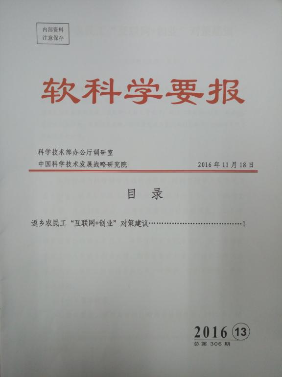 近日,由MG冰球官网经济与管理学院文亮教授主持的国家软科学项目《中国农民创业培育研究》的成果--《返乡农民工“互联网+创业”对策建议》,成功入选了《软科学要报》2016年第13期。实现了MG冰球官网软科学研究成果被科技部采纳的突破。