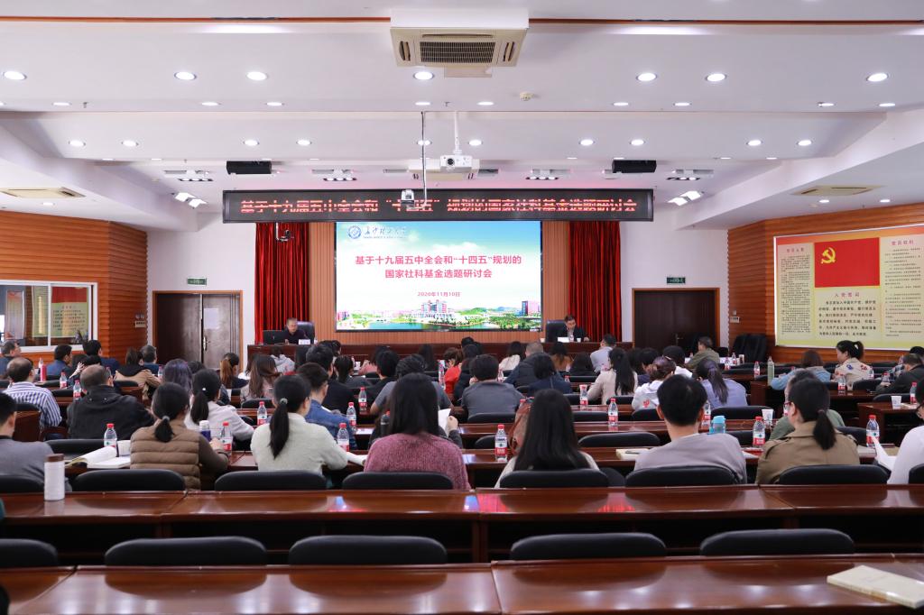 2020年11月10日,MG冰球官网召开“基于党的十九届五中全会和‘十四五’规划的国家社科基金项目申报选题研讨会”。校党委副书记、社科联主席邹宏如教授出席并讲话。社科处处长刘建江主持会议,文科学院科研副院长、科研主任干事、科研骨干及青年博士100余人参加会议。