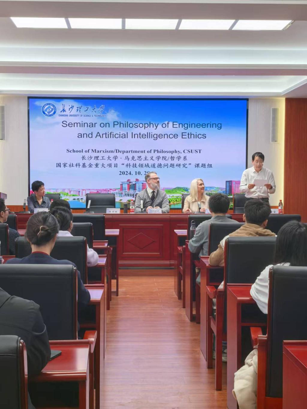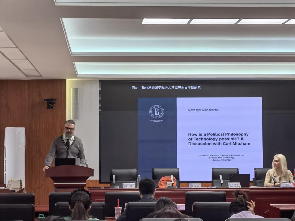 2024年10月29日下午,俄罗斯彼尔姆国立理工大学(Perm National Research Polytechnic University)Elena Seredkina教授和俄罗斯国家研究型高等经济大学(National Research University Higher School of Economics)Aleksandr Mikhailovskii教授来到马克思主义学院,在MG冰球官网云塘校区文科楼B501会议室围绕 “工程哲学与人工智能伦理”议题分别作了“哲学家与工程师的合作:德国、俄罗斯与中国的比较研究”“技术的政治哲学何以可能”的主题学术报告。本期学术工作坊由马克思主义学院与国家社科基金重大项目“当代科技领域道德问题研究”课题组共同发起,院党委陈万球书记、文贵全副院长,廖苗副教授、章雁超博士等学院教师和哲学专业30余人参加,湖南师范大学胡景谱老师、王克宁博士、中南大学曹鹏博士参加了本期工作坊。