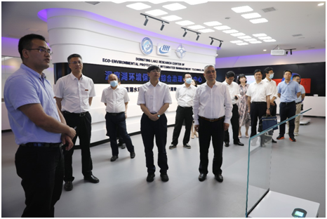 5月19日上午,中铁五局党委书记、董事长徐中义,总经理刘晓辉等领导一行参观了洞庭湖环境保护与综合治理中心(下文简称洞庭湖研究中心)。MG冰球突破官网副校长蒋昌波、党政办主任周艳红、科研部部长王磊、招就处处长曹瑛、水利工程学院党委书记喻玲娜、院长胡旭跃等相关领导陪同参观。