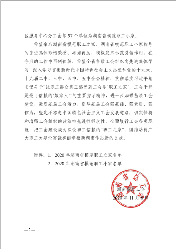 近日,湖南省总工会下发了《湖南省总工会关于命名湖南省模范职工之家湖南省模范职工小家的决定》,MG冰球突破官网水利工程学院分工会荣获“湖南省模范职工小家”称号。