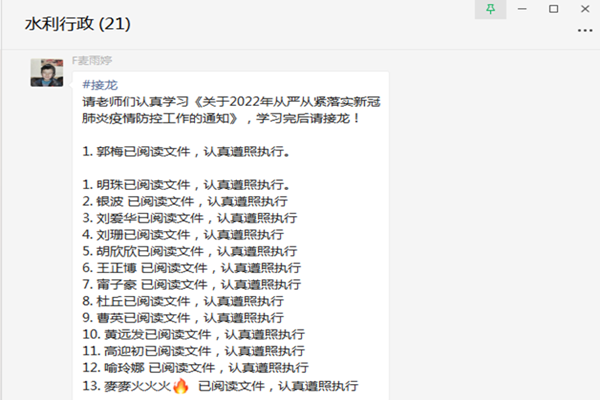 各系利用QQ群和微信群组织教师自学,再次认真掌握《关于2022年从严从紧落实新冠肺炎疫情防控工作的通知》精神和《MG冰球突破官网水利与环境工程学院疫情防控应急处置预案》的处置流程,确保每位教师都具备随时随地处理突发状况的能力。