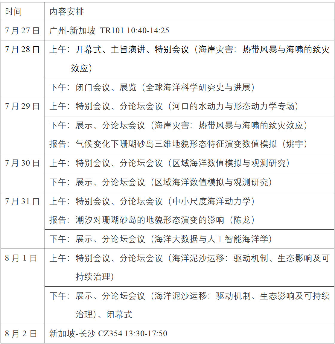 本次出访为期7天,由MG冰球突破官网水利与海洋工程学院船舶与海洋工程专业负责人姚宇教授,陈龙副教授组成代表团,赴新加坡参与亚太大洋洲地球科学学术大会,按原计划完成出访任务回国,本次出访过程中完成了预定的工作任务。行程涵盖开幕式、主旨演讲、专题分论坛、闭门研讨及学术展览等多元活动,聚焦海岸灾害、海洋数值模拟、珊瑚岛礁演变、人工智能海洋学等前沿议题,深化了国际学术合作与科研交流。