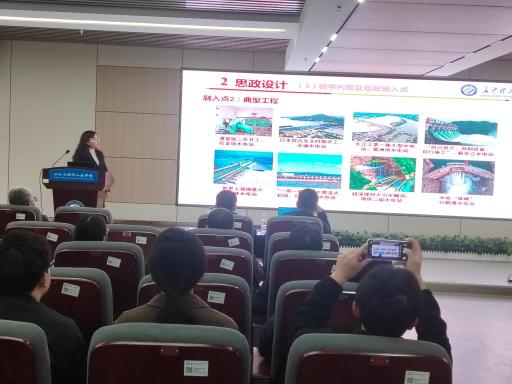 本次比赛共有来自港航、水电、水文、船海和给排水5个专业的教师参加。活动中,老师们结合专业育人特点和主讲课程的课程思政建设情况,分别介绍了课程思政建设目标、课程思政建设总体设计、课程思政教学实践情况、课程思政建设取得的育人成效等内容,并进行了现场教学展示。评审组专家认真听取了参赛教师的汇报,并围绕“课程思政元素的挖掘、教学内容与课程思政的有机融合、如何突出课程思政的重点和特色、课程思政教学内容的优化、课程思政教学的有效实施”等方面对参赛老师进行了现场点评和指导,同时结合各自课程思政建设过程和参加教学比赛的经历,分享了自己的经验,并与参加活动的老师们进行了深入的探讨和交流。