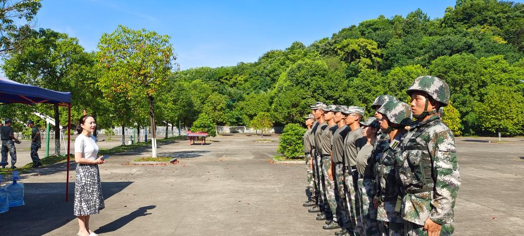 喻玲娜代表学院表达了对参训学生的关心,详细了解他们的生活、学习、训练等情况,高度赞扬了他们敢于担当、艰苦奋斗、锐意进取的精神以及在训练中所展现出的坚韧不拔的优良品质,希望他们能好好珍惜训练时光,在接下来的训练过程中以更加严肃认真的态度,最饱满的热情展现出我院学子吃苦耐劳、勇往直前的精神!喻书记的讲话极大地鼓舞了参训学生,大家纷纷表示一定会严格训练,积极准备,争取圆满完成训练任务。