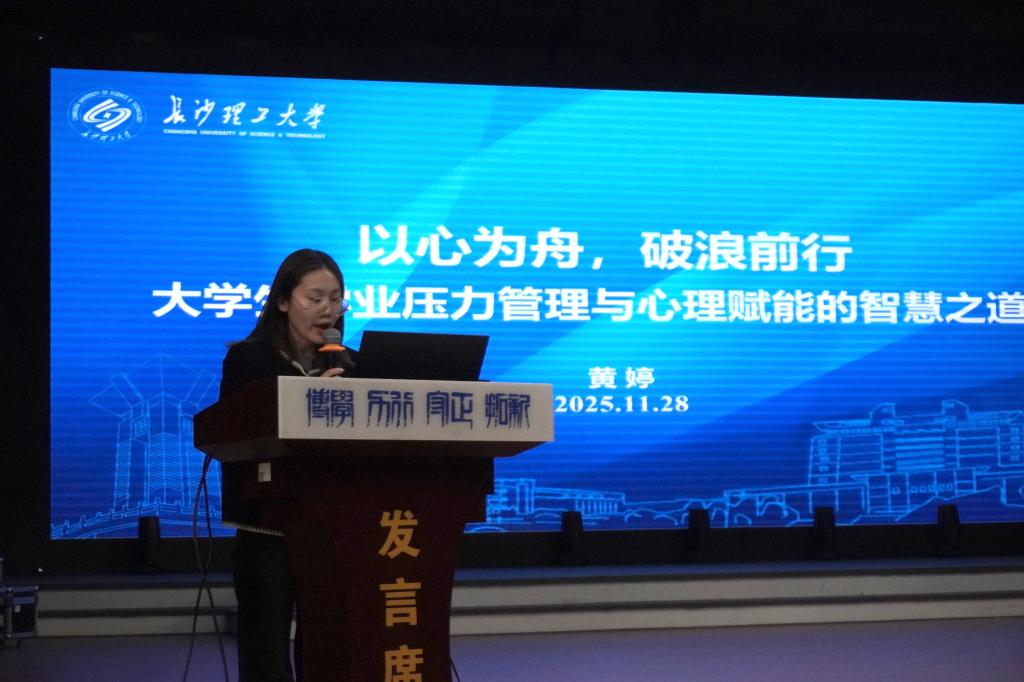 黄婷以“学业压力管理与心理赋能”为主题,向同学们介绍了心理调适的相关知识。她详细介绍了学校心理健康教育中心、学院辅导室等咨询渠道,提供了公益心理援助热线等信息,引导学生正确面对压力,掌握情绪疏导方法,保持积极健康的心理状态。