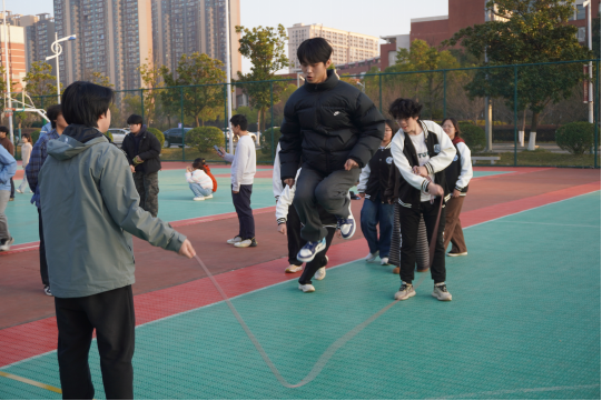 作为压轴项目的“跳长绳”,更是将现场氛围推向高潮。每班18名队员分工明确,2人负责摇绳、15人依次跳绳。绳子快速翻飞间,队员们鱼贯而入、轻盈跳跃,即便出现断绳情况,也能快速调整状态重新衔接,绝不轻言放弃。3分钟的时间里,各班级的跳绳个数不断刷新,场边观众的呐喊助威声震耳欲聋,充分彰显了班级的集体协作精神与凝聚力。