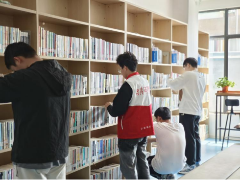 在长沙市图书馆新宇分馆,同学们化身“书香守护者”,开展图书整理志愿服务。活动现场,大家分工协作、细致认真,对图书逐一归架、全面擦拭除尘,细致清理书架死角。经过两个多小时的用心劳动,馆内书架整齐有序、阅读环境清新整洁,为广大读者营造了舒适温馨的阅读氛围。同学们以点滴行动践行“奉献、友爱、互助、进步”的志愿精神,获得图书馆工作人员与现场读者的高度认可。