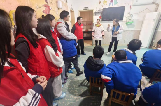 活动中,志愿者们不仅全程陪伴“小朋友”们互动游戏,还认真聆听张老师讲述他们的成长经历与日常需求。让同学们深受触动的是,张老师已在社区默默守护这群特殊“小朋友”整整24年——从青春年少到年过半百,她用日复一日的耐心、爱心与责任心,照料着他们的饮食起居,守护着他们未被世俗打扰的童真。“看到这么多年轻大学生愿意花时间关心他们,我特别欣慰。”张老师感慨道,24年的坚守虽辛苦,但孩子们的每一个笑容、每一点进步,都是她坚持下去的动力。这份跨越二十余载的坚守,也为在场的志愿者们上了生动的一课。