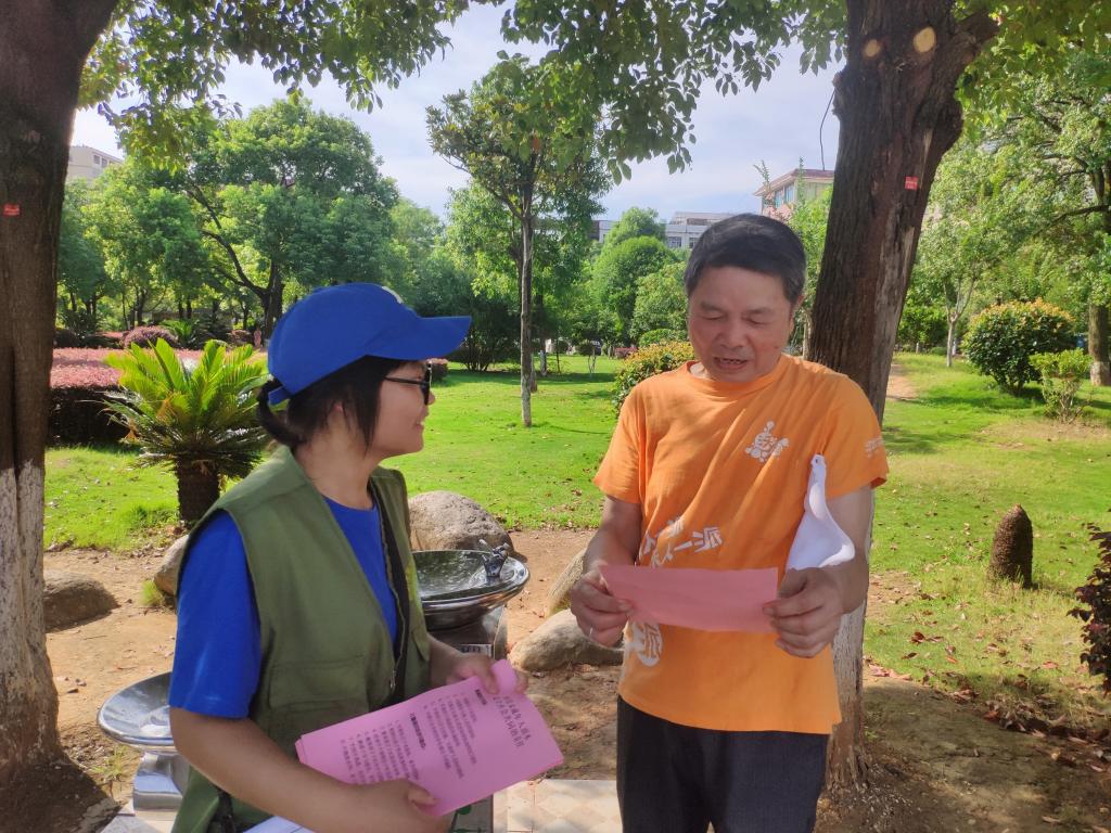 “危险水域有哪些?”“野外水域为什么危险?”“不幸落水,如何正确自救?”活动中,团队成员前往白竹湖广场,通过问答及发放宣传资料的形式,向周边群众介绍防溺水相关知识、强调防溺水的重要性。