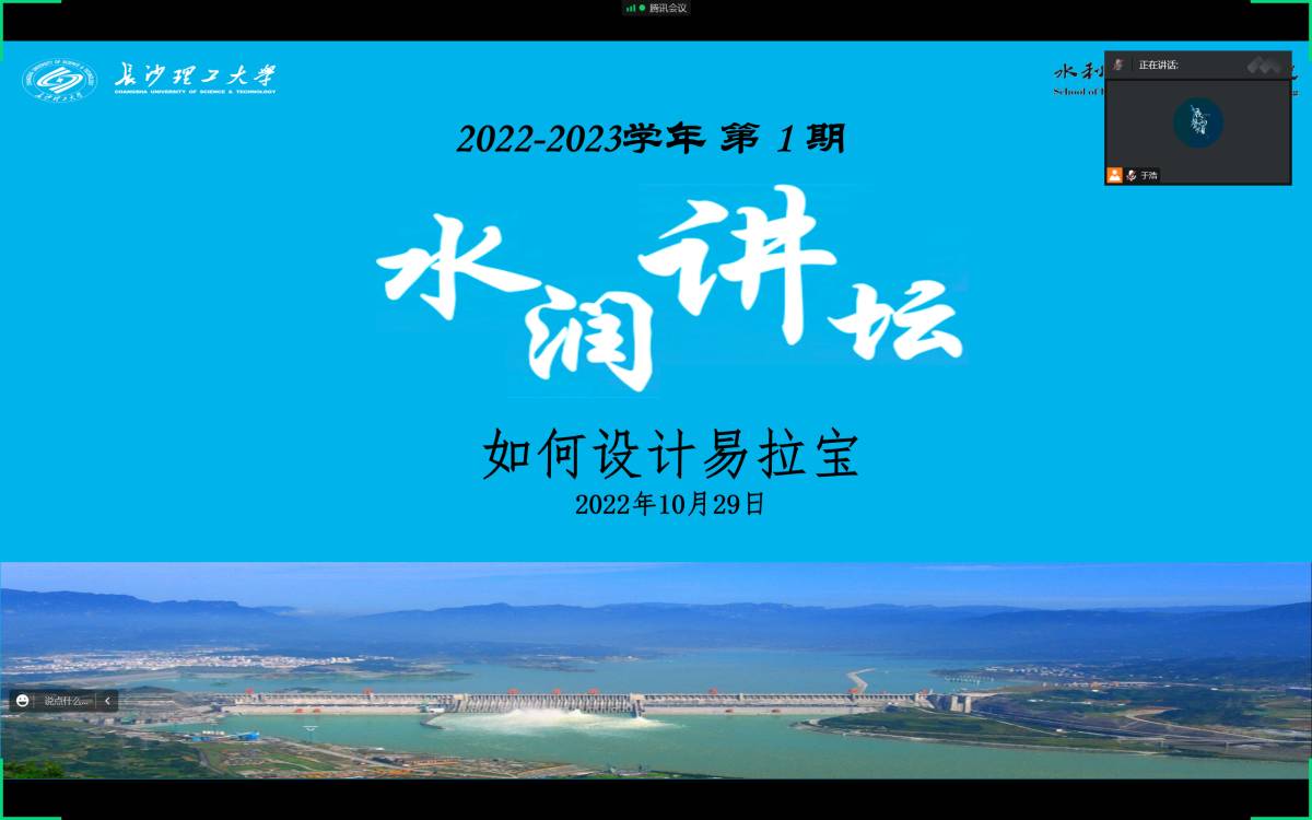10月29日晚19:00,水利与环境工程学院于线上举办2022-2023学年第1期水润讲坛,主题为“如何设计易拉宝”。本次活动由刘宇轩、唐梓萱两位同学主讲,给2022级第三届“大禹杯”水利模型创新设计大赛参赛同学讲解如何设计易拉宝。