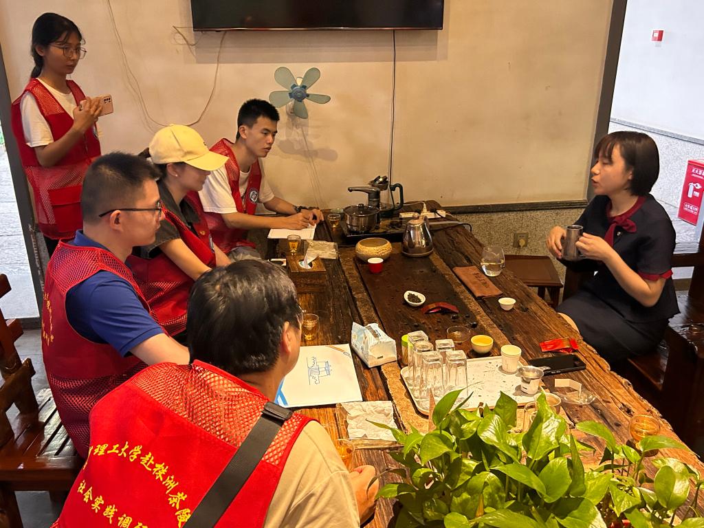 当日下午,实践团走访了茶祖文化园附近商户,对茶叶产业开展调研并采访了茶祖·三湘红茶企业的负责人。负责人为实践团成员讲解了公司的发展历程、现状与未来规划并详细介绍了公司旗下各类产品,展示了茶祖·三湘红公司在茶叶市场的独特定位与竞争优势和专业的茶叶知识,让大家对茶文化有了更深刻的认知与感悟。