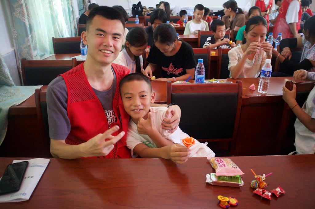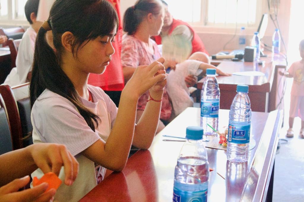 “花朵的部分我们已经折好了,接下来我们来折茶叶”,活动现场,实践团成员孙湘颖带领孩子们折起了茶花。五颜六色的纸张在孩子们的手中翻转、折叠,不一会儿,一朵朵精美的茶花在孩子们手中绽放开来。