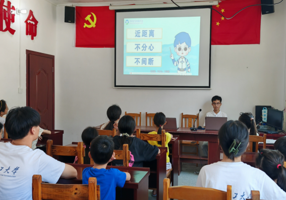 调研结束后,实践团成员为大福镇的青少年进行水知识科普宣讲和防溺水安全教育。