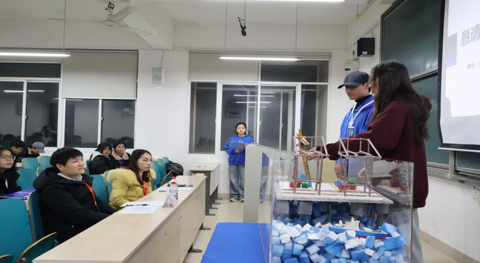 12月24日晚,MG冰球突破官网第五届“大禹杯”水利模型创新设计大赛复赛于工科一号楼成功开展。刘杰、高阳等10名老师应邀作为评委老师参加。