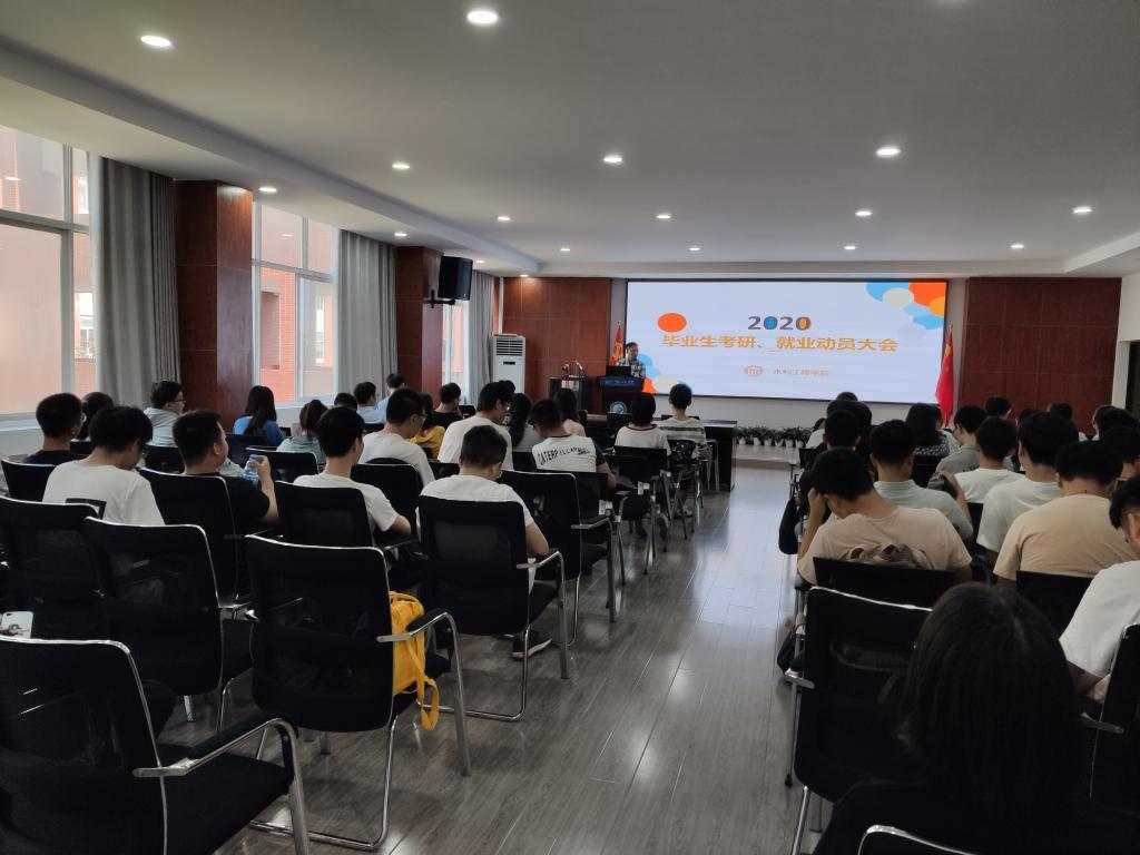9月23日上午,水利工程学院2020届毕业生考研、就业动员大会在MG冰球官网工三B319召开,全体2020届学生、就业辅导员肖苹宁出席会议,学院党委副书记王学成主持会议。