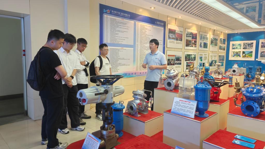 师生们参观了企业展览厅,对企业的发展历程、文化内涵以及创新成就进行了深入的了解。展览厅内所展示的荣誉证书以及各类创新产品,生动地展现了企业在阀门制造领域的领先地位以及在智慧水务等领域的创新探索。