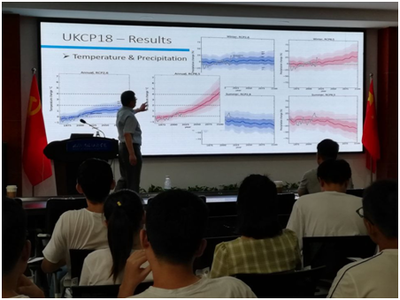 潘顺琪教授的报告分为卡迪夫大学介绍、英国气候变化影响项目及海岸洪水模拟三个主要部分。首先简单介绍了卡迪夫大学及其工程学院的基本情况,对卡迪夫大学水环境研究中心的研究团队及研究内容进行了说明。随后,潘教授对英国Intergovernmental Panel on Climate Change (IPCC) 项目的进行情况及相关成果作了详细介绍。IPCC是1990年开始进行的一项针对全球气候变化的评估项目,对气温、降雨、海平面上升等要素均有涉及。基于IPCC的研究报告,潘教授介绍了其研究团队在英国威尔士某海岸地区进行的海岸洪水模拟研究,针对不同的海平面上升情况,对沿岸区域的洪水风险进行模拟,展示了相关的洪水淹没图及洪水风险图。最后,潘教授详细解答了参会师生提出的关于气候变化和洪水研究的相关问题,并为有意赴英国深造的学生提供了专业的建议。