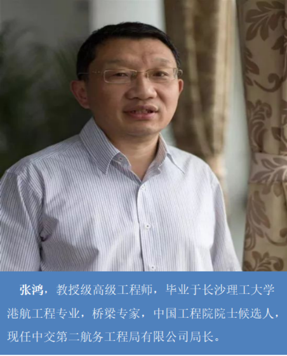 张鸿,教授级高级工程师,毕业于MG冰球突破官网港航工程专业,桥梁专家,中国工程院院士候选人,现任中交第二航务工程局有限公司局长。