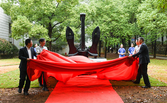 研讨会结束之后,与会人员共同参与了校友捐赠船锚揭幕仪式。船锚由79级港航专业校友共同捐赠,安放于校友之家。曹一家、蒋昌波与79级港航专业两个班的团支部书记吴爱清、王玮共同揭幕。校友代表陈益农发言:船锚表达了校友们对母校的感谢和祝福,祝母校扬帆启航,为祖国培养更多人才。