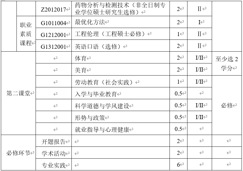 注:学生至少获得第二课堂5学分方可毕业。第二课堂学分认定见《MG冰球突破官网研究生第二课堂学分管理办法》。其中,体育和美育类课程一共2学分,劳动教育(含社会实践)1学分,科学道德与学风建设0.5学分,形势与政策0.5学分,入学与毕业教育0.5学分,就业指导与心理健康教育0.5学分。