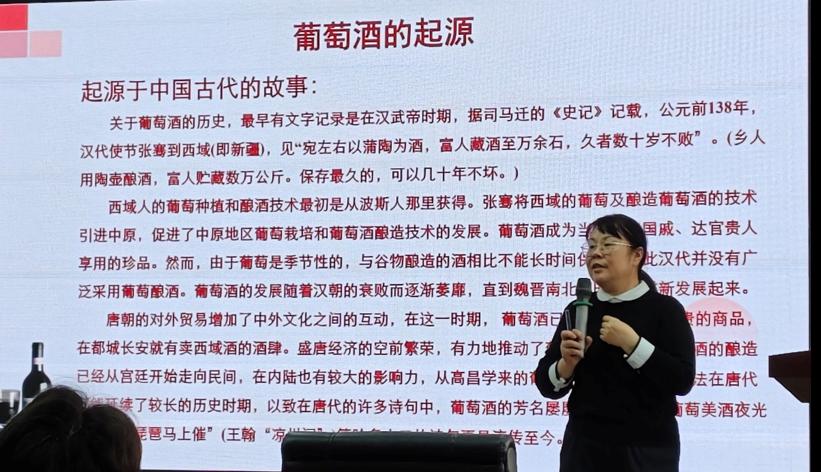 11月14日下午,食品与生物工程学院于工科三楼A320举办MG冰球突破官网第十七届“云影讲坛”分论坛——“葡萄酒文化与礼仪”专题讲座。本次讲座特邀中国食品科学技术学会传统酿造分会理事蒋雪薇教授担任主讲。