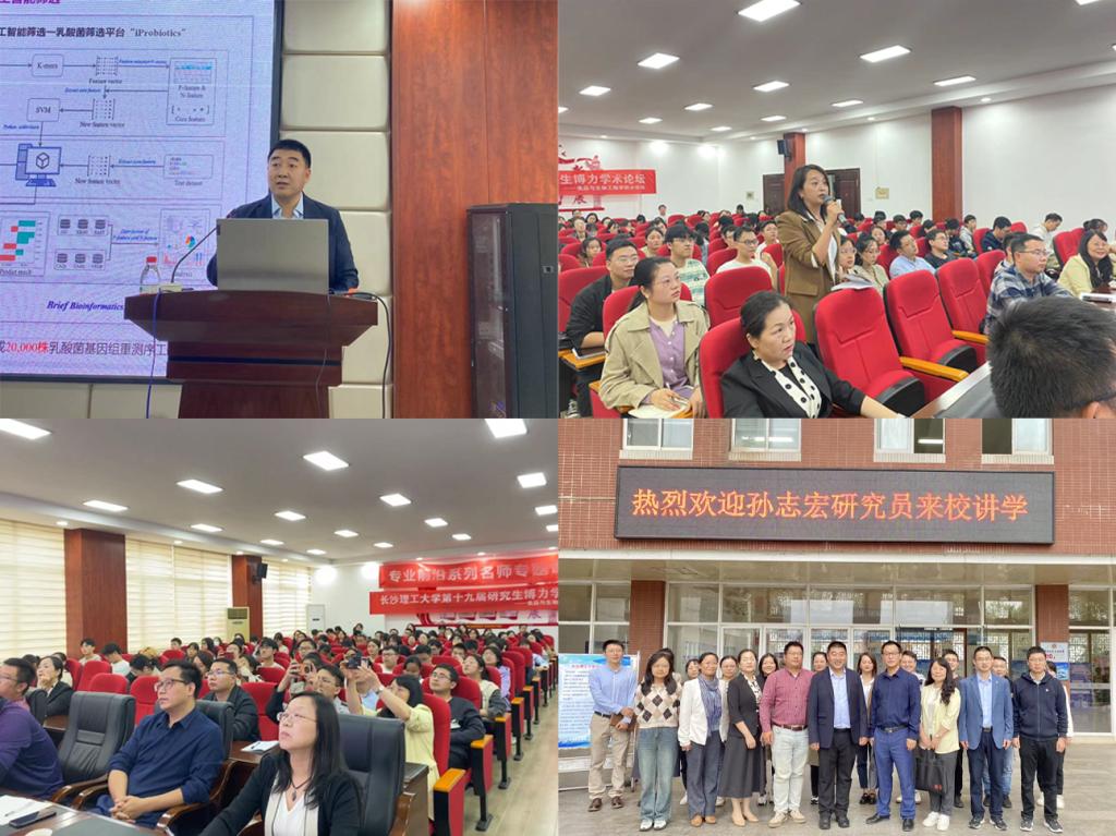 2023年10月8日下午,本科专业前沿系列名师专题、研究生博力学术论坛之大师引领系列讲座继续在云塘校区工科三号楼A320举行。国家杰出青年科学基金获得者、内蒙古农业大学乳品生物技术与工程教育部重点实验室副主任、博士研究生导师孙志宏研究员应邀来我院做了主题为“乳酸菌资源的开发利用”的学术报告。会议由我院院长程云辉、副院长许宙主持。学院百余名师生参加了本次报告会,现场座无虚席,收获了阵阵热烈掌声。