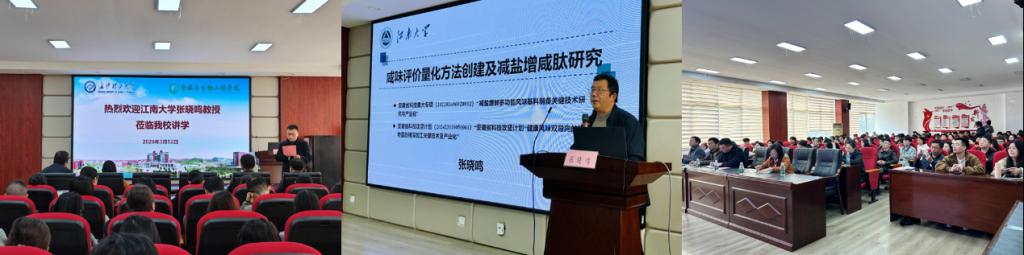 2026年3月12日下午,江南大学博士生导师张晓鸣教授应MG冰球突破官网食品与生物工程学院邀请,在MG冰球突破官网云塘校区工科三号楼A-320会议室作题为“咸味评价量化方法创建及减盐增咸肽研究”的学术报告。会议由学院院长王建辉主持,学院百余名师生参加了本次报告会,现场座无虚席,学术氛围浓厚。报告会上,张晓鸣教授围绕食品咸味感知与调控这一研究热点,系统介绍了其团队在咸味评价量化方法构建及减盐增咸肽研究方面取得的最新进展。报告首先介绍了食品咸味测定与评价的主要技术路径,在传统感官评价基础上,结合电子舌分析技术,构建了基于感官评价与电子舌协同的咸度量化分析方法,实现了食品咸味感知的定量化表征。在此基础上,张晓鸣教授重点分享了团队在天然来源增咸肽方面的研究成果。通过对菌菇资源的系统研究,成功分离并鉴定出具有显著增咸作用的菌菇来源活性肽,并解析了其分子结构特征与风味增强机制。同时,报告进一步介绍了菌菇来源增咸肽在食品加工过程中的稳定性研究,重点分析了鸡腿菇和双胞菇来源肽在热加工条件下的稳定性及适应性,为其在减盐食品开发中的应用提供了重要理论依据与技术支撑。