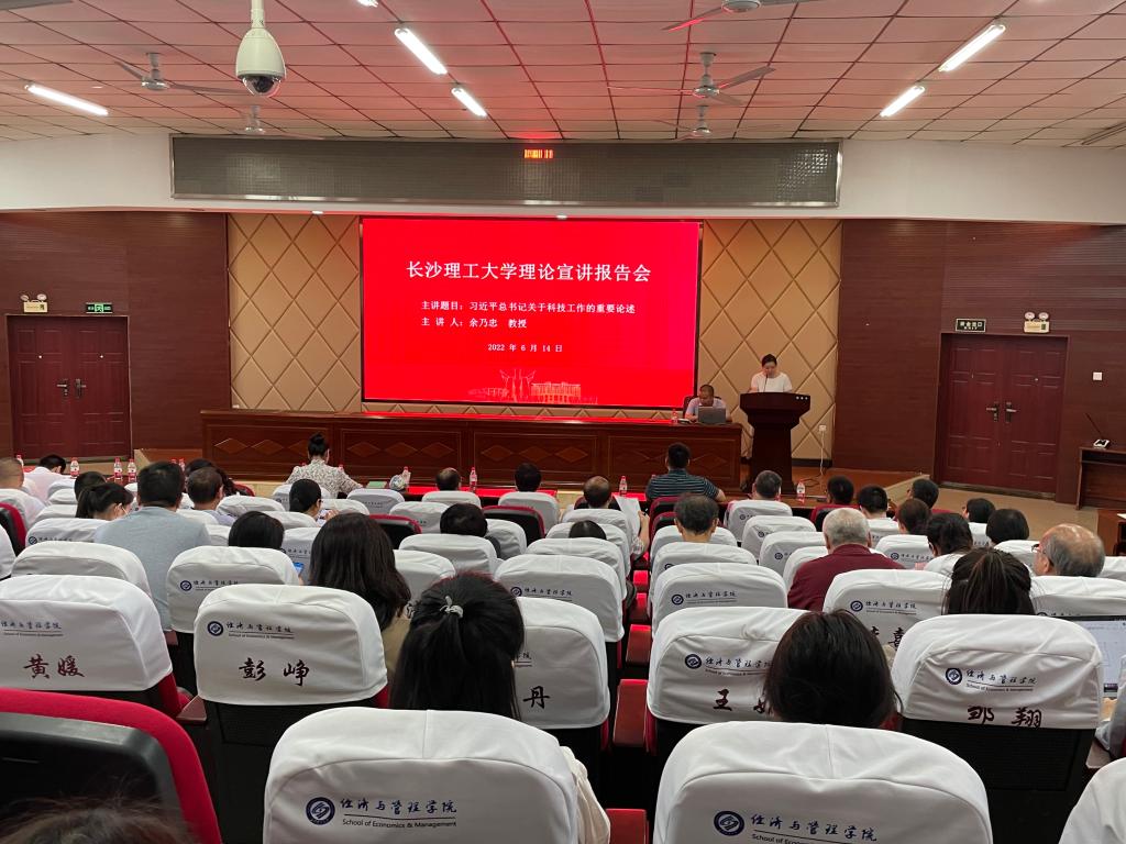 为持续学习贯彻习近平新时代中国特色社会主义思想和党的十九大及十九届历次全会精神,进一步推进“笃信长理建设”,6月21日下午,马克思主义学院余乃忠教授在云塘校区文科楼A200会议室为食品学院和经管学院进行理论宣讲。宣讲主题为《习近平总书记关于科技创新重要论述及其重大价值》,食品学院和经管学院教职工到会参加了本次宣讲。