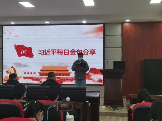 “只有紧紧依靠人民,才能创造历史。我们要树牢人民是历史创造者、是真正英雄的唯物史观,要坚持全心全意为人民服务的根本宗旨。” 读书班学员刘咏翰和陈靓针对“坚持以人民为中心”,分享了自身对人民立场的思考,通过引用习近平总书记“我将无我,不负人民”这一金句,号召青年党员既要讲求 “无我”的忘我奉献、功名无我,又要追求“有我”的是奋斗有我、担当有我, “有我”之担当追求“无我”之境界。
