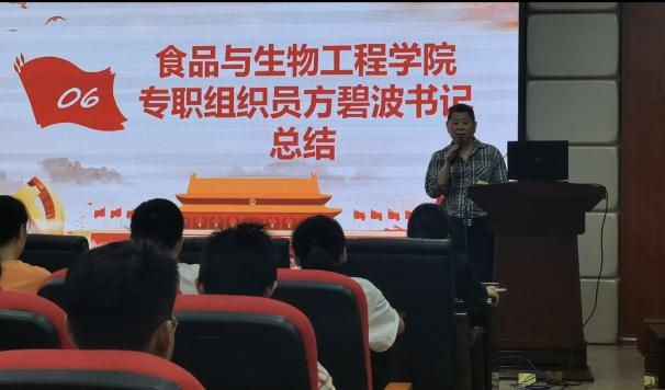 2022年9月26日,MG冰球突破官网食品与生物工程学院食品本科生党支部在工科三号楼A-320举行《习近平谈治国理政》读书班第八次读书分享会,食品学院党总支书记王建辉、党总支副书记练黎旋、学工办老师胡佳佳等师生近100余人参加此次活动。