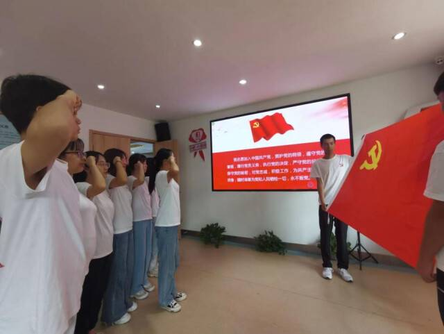 在集中参观“心中的梁家河”之后,全体党员向党旗宣誓,以更加坚定的理想信念、昂扬的精神状态迎接党的二十大的召开。
