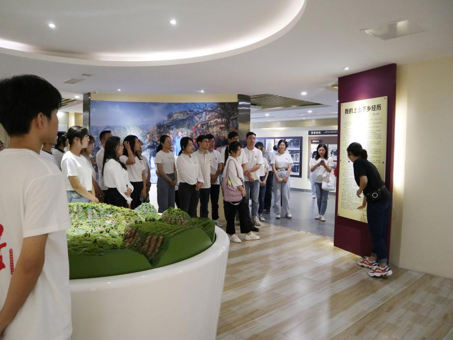 “1969年,年仅15岁的习近平主动申请到陕北农村插队......”主题鲜明、内容丰富的展馆,声情并茂、生动有趣的讲解令在场师生仿佛回到了1969年的陕北梁家河,看到了年青时的习近平总书记在田间劳作、在为民奔波、在窑洞读书......