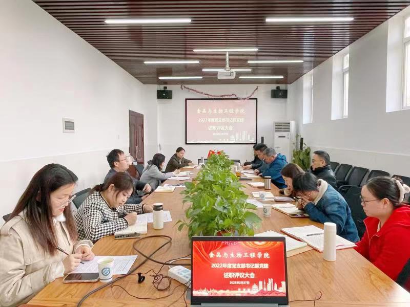2月27日下午,食品与生物工程学院在工三楼A349会议室召开2022年度党支部书记抓党建述职评议大会。会议由党总支书记王建辉主持。学院全体党政领导班子、学院教工党支部书记、学生党支部书记及党支部委员参加会议。