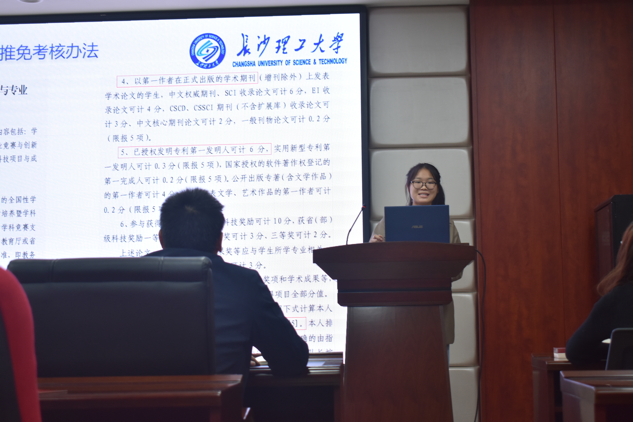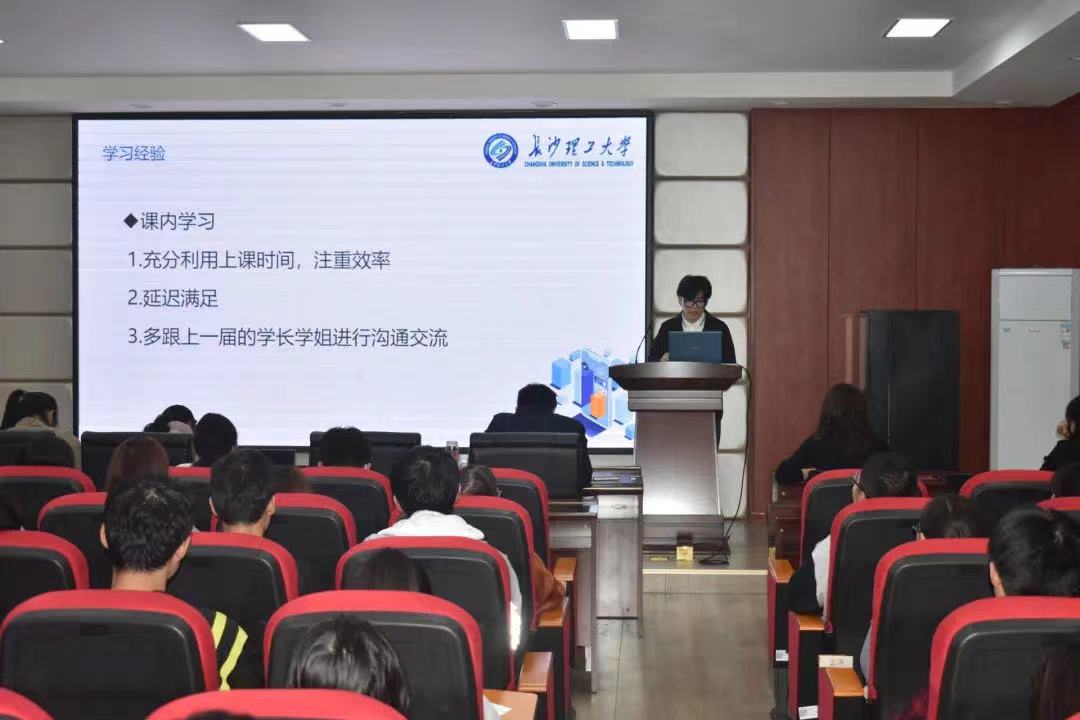邹世东重点分享了大学三年的学习经验,他指出在课内学习上,要充分利用上课时间,提高学习效率;在课外学习上,要注重英语学习和提高科研竞赛水平,积极主动寻求老师和学长学姐的帮助,最后他勉励同学们要始终保持学习态度,怀有终身学习的思想观念。肖锦湘详细介绍了申请推免的流程及要求,提醒同学们要特别注重提升学业成绩、英语水平以及科研创新潜质与专业能力,在回顾自己的保研经历后寄语同学们要提早做好自身定位,注重积累,为拥有更多的选择权作准备。最后翟月滢向大家介绍了保研的几种途径,并从日常学习,科技竞赛,科研经历等方面进行分享,对同学们提出希望,要在学习生活中追求卓越,勇于尝试,用心总结,为了自己的梦想奋斗不止。