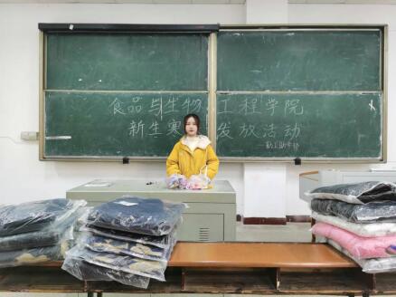 12月18日下午,食品与生物工程学院在金4-109举办了寒衣发放活动。勤工助学部全体学生干部为学院25位同学发放寒衣,学工办王凤出席本次活动,送上学校和学院的关心和关怀,传递浓浓的爱与温暖。
