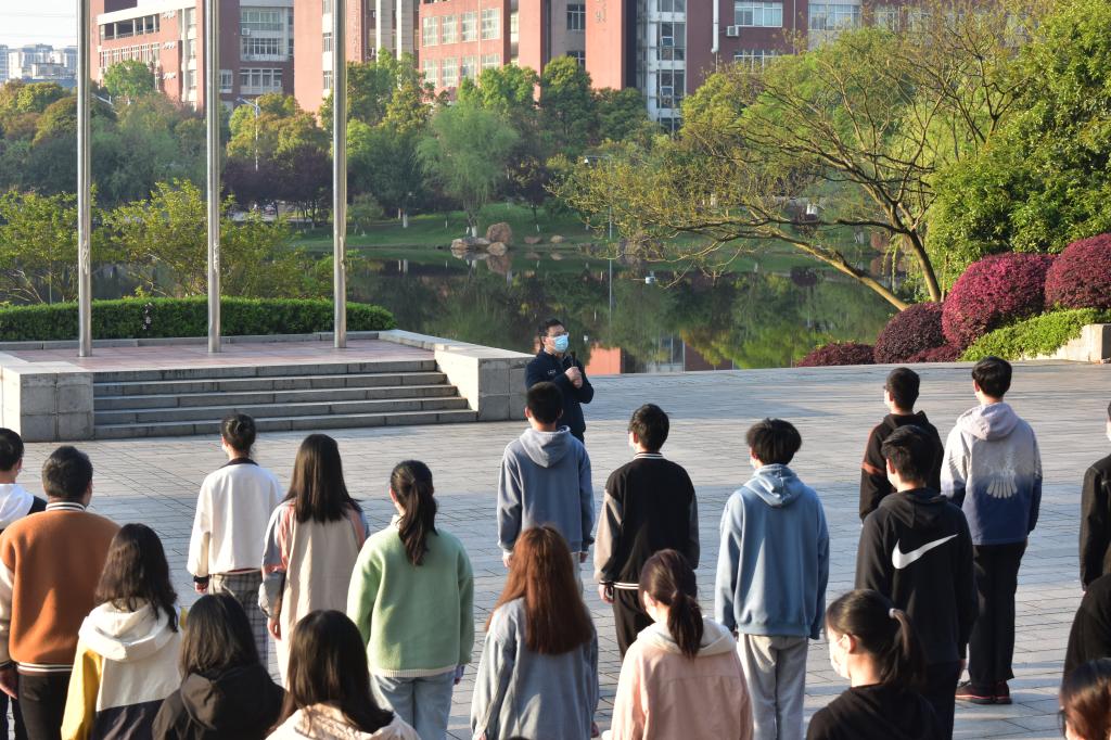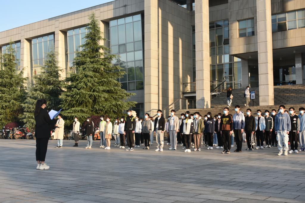升旗仪式完毕后,学生代表朱雅婷在国旗下宣读“疫情防控,从我做起”倡议书,倡导大家落实好常态化疫情防控各项措施,戴口罩、少聚集、不扎堆;坚持每日打卡体温检测以及积极尽早做核酸,出入扫场所码;尽量做到不不点外卖、不网购快递,不私自出校、不翻越围墙,更不当校外外卖的“转运员”,一起共同抵御新冠病毒的传播!党总支书记王建辉强调学好专业知识的重要性,鼓励学生积极参加学科竞赛,积累经验,丰富大学期间的阅历。