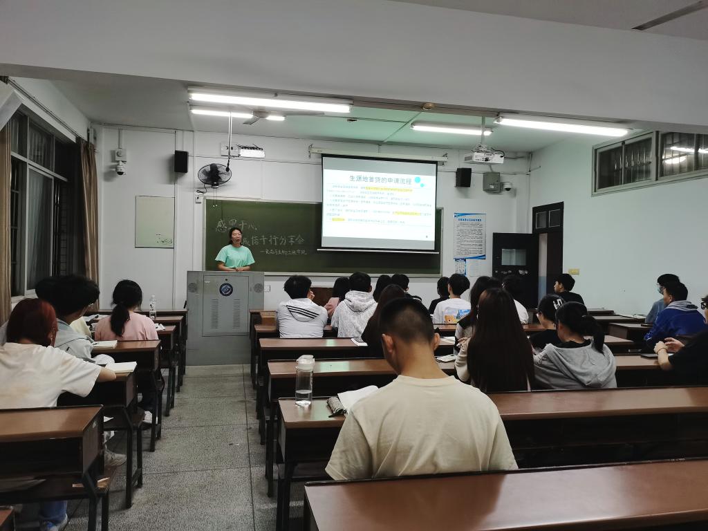 学院负责学生资助工作的王凤老师从国家助学贷款的申请流程、续贷流程、还款要求等方面为大家介绍了助学贷款的相关事宜。她希望同学们能够以诚为本、以信为用,做一名有担当、讲诚信、怀感恩、有回报的新时代大学生。此外,21级下班党员组组长张轩诚也代表全体下班党员表达了对全体家困生的期望。