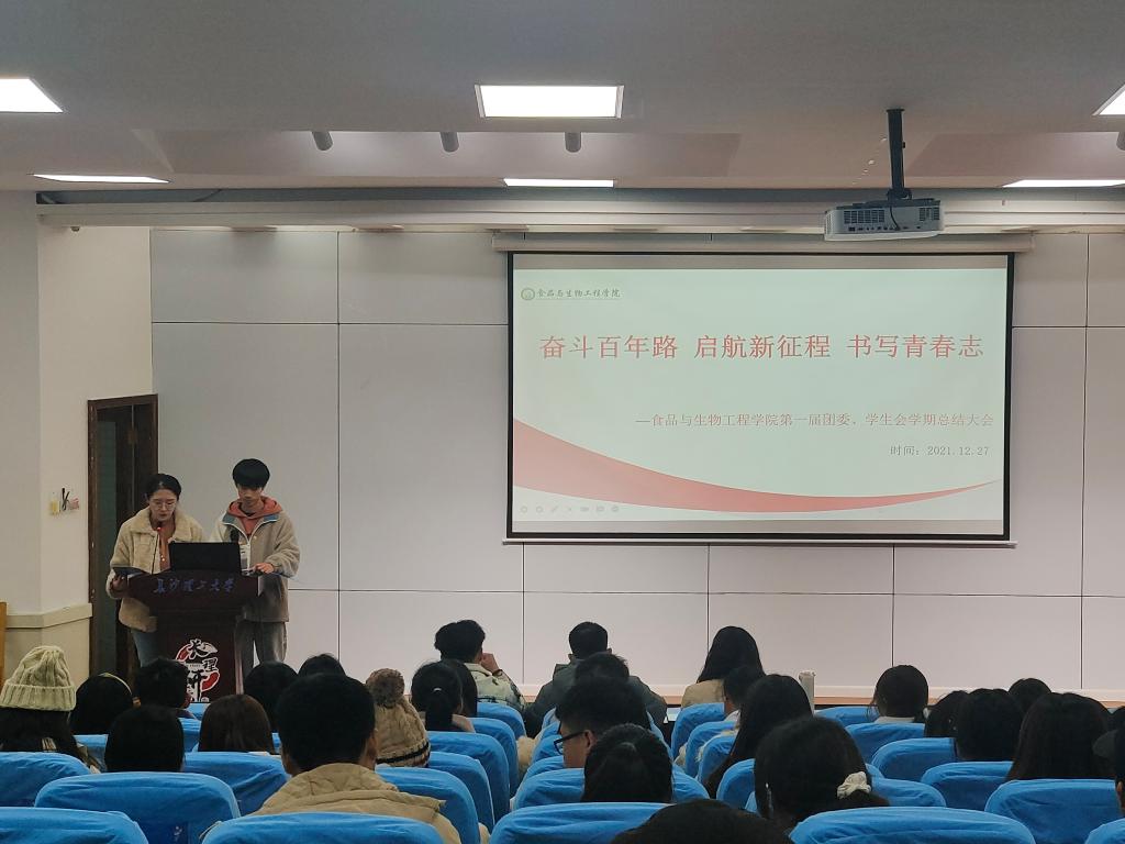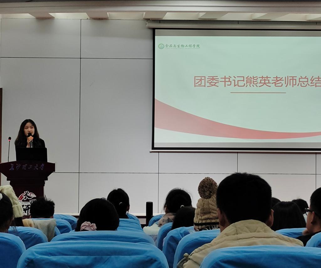 12月27日晚19:00,食品与生物工程学院于金盆岭校区十二教200教室成功召开第一届团委、学生会学期总结大会。院团委书记熊英及第一届团委、学生会全体成员出席此次会议。本次会议由主席团成员左灵睿、刘佳艺主持。