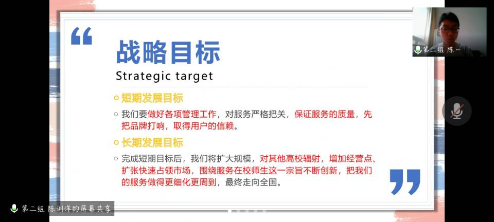 各项目团队从是否利用互联网技术、方法和思维在销售、研发、生产物流、信息、人力、管理等方面寻求突破和创新,分析今后的发展趋势所带来的作用与意义、商业可行性分析以及是否充分与专业教育与创新创业教育结合等方面进行PPT答辩。