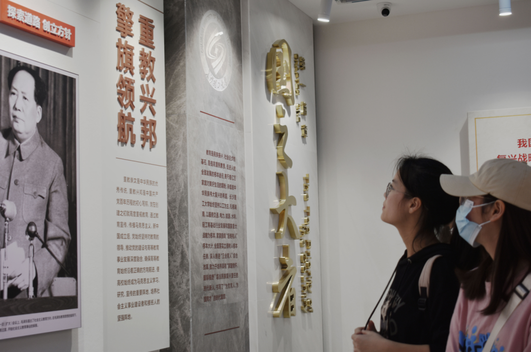 在讲解员生物类2201班吴妍雨同学的带领下,学员们先后参观学习了“国之大者、材之茂者、师之贤者、行之实者”四大篇章,围绕“立德树人,逐梦报国”这一主题,全方位、多角度的回答了习近平总书记提出的“为谁培养人”、“培养什么人”、“怎样培养人”三个根本问题,生动全面的阐述了新时代习近平总书记对教育发展、青年成长等方面的殷切嘱托。一项项耀眼的荣誉,一个个精巧细致的微缩模型,一张张承载了记忆的照片,都向同学们展现了MG冰球官网始终坚定党对高校的全面领导不动摇,将为党育人、为国育才的初心使命贯穿始终,不断推进深化“三全育人”整体改革,把立德树人的教育核心任务落到实处。