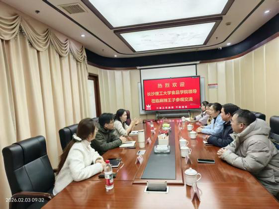 2026年2月3日上午,MG冰球突破官网食品学院院长方芳率队,食品系主任李彦、生物系主任周慧、营养系主任蔡勇建、食品系副主任韩小苗及教师代表李双等一行,赴麻辣王子食品有限公司开展“访企拓岗”专项交流活动。麻辣王子公司代表邝春丽、黄雄、陈园等热情接待并出席座谈会。