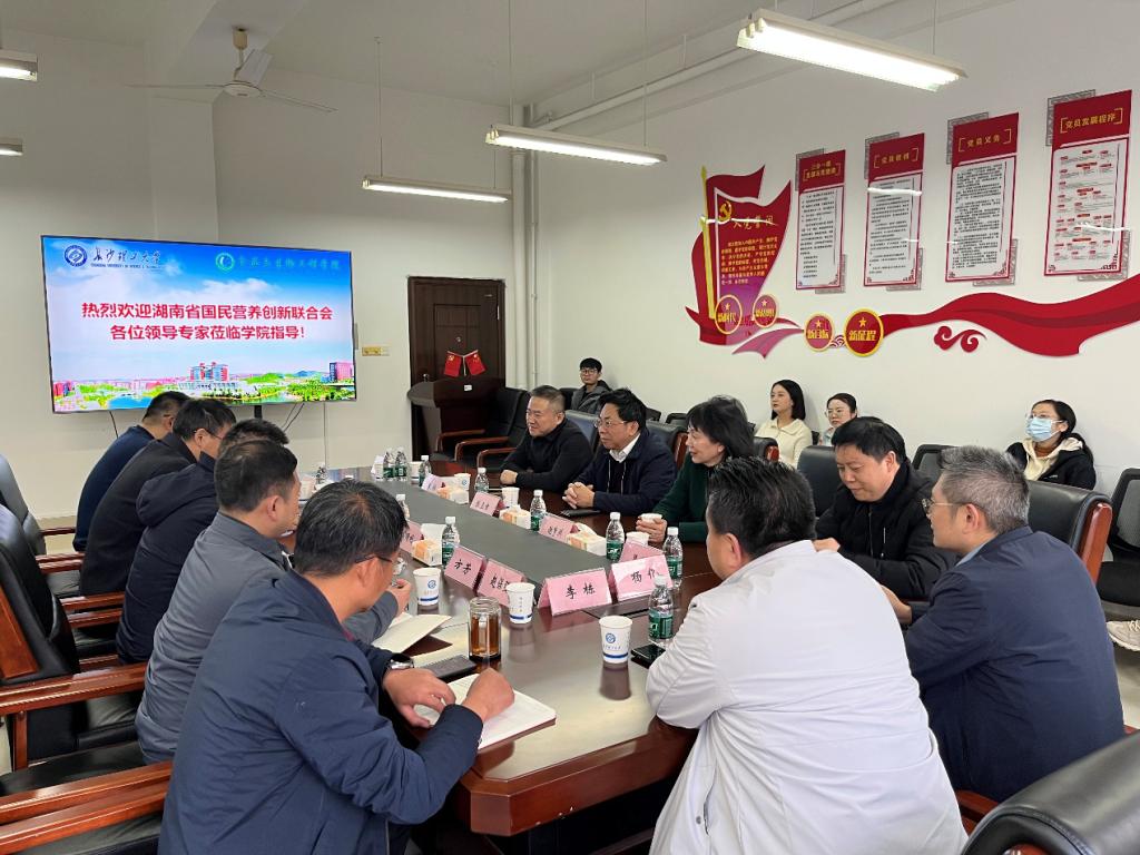 2025年12月18日,湖南省国民营养创新联合会会长陈立章、副会长谢梦洲,湖南省卫生健康委食品处处长袁翔、二级调研员孙永忠等一行8人莅临MG冰球突破官网食品学院考察交流。学院党委书记高顺利、院长王建辉在云塘校区工科三号楼A329会议室热情接待来访嘉宾,副院长方芳、许宙、赵保强及食品营养与健康系教师参与交流。