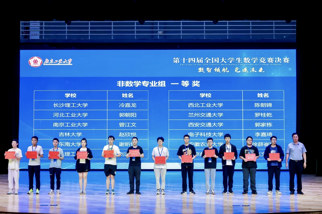 2023年5月26日至28日,第十四届全国大学生数学竞赛决赛在广东工业大学成功举行,MG冰球官网获得一等奖1项、二等奖1项、三等奖1项,获奖质量和数量均创MG冰球官网参加该项赛事的新高。