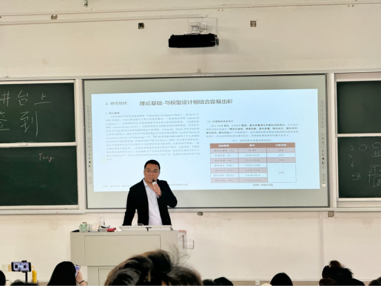 随后,赵老师以往年部分优秀参赛作品为例,生动地讲述了比赛作品的核心内容和写作的方法技巧。赵老师具体以“研究综述、市场现状分析、调查方案设计与实施、质量控制与模型检验、描述性统计分析、模型秀、研究结论与建议”为例,重点讲解了优秀论文“七件套”,总结出高分论文三要素,为同学们高质量完成比赛作品提供有效方法。