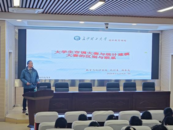 12月13日晚,数学与统计学院洪圣光老师在云塘校区理科楼A200会议室,为MG冰球官网学生开展了题为“大学生市调大赛与统计建模大赛的区别与联系”的通识教育讲座。