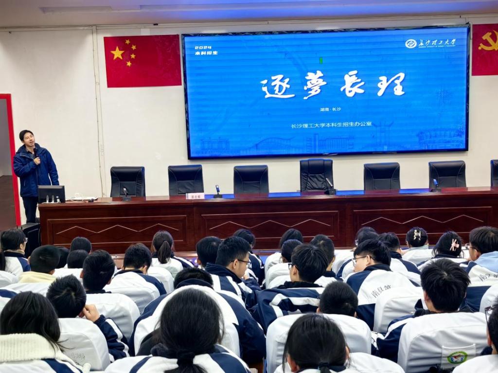 座谈会之后,熊寿遥和郑忠辉分别为两所中学的师生开展了数学科普知识讲座和招生宣传。熊寿遥以“微积分的力量——探索数学的无限可能”为题给南县第一中学400余名师生作了一场数学科普知识讲座,他从微积分是谁、微积分从哪里来、微积分到哪里去等方面详细介绍了微积分的定义、产生背景、发展进程和应用场景,他通过生动的案例和形象的比喻,让师生们深刻感受到了微积分在科学研究、工程技术以及经济金融等领域的广泛应用和巨大价值。